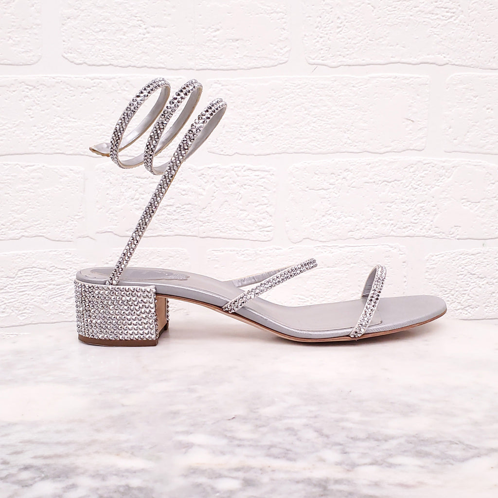 RENE CAOVILLA BLOCK HEEL SANDALS WITH WRAP AROUND CRYSTAL DETAILS - SIZE 38.5