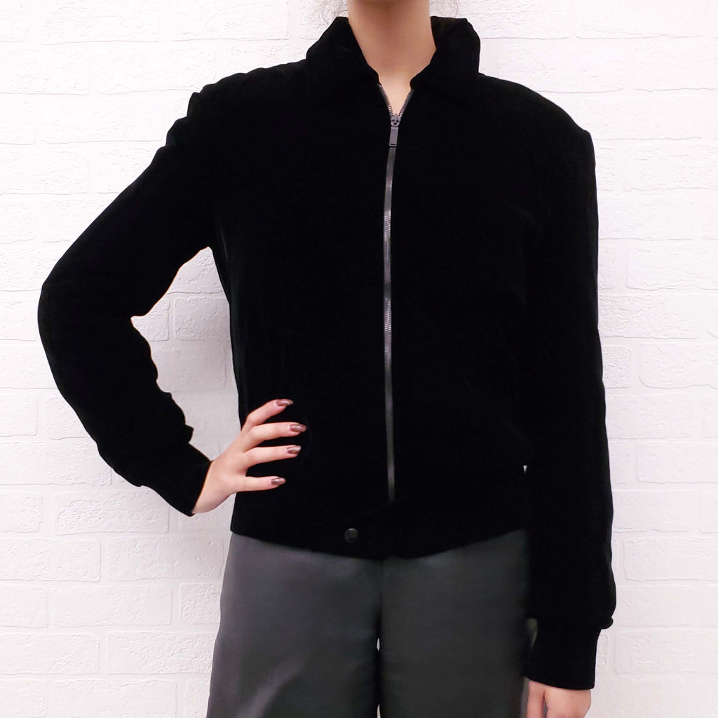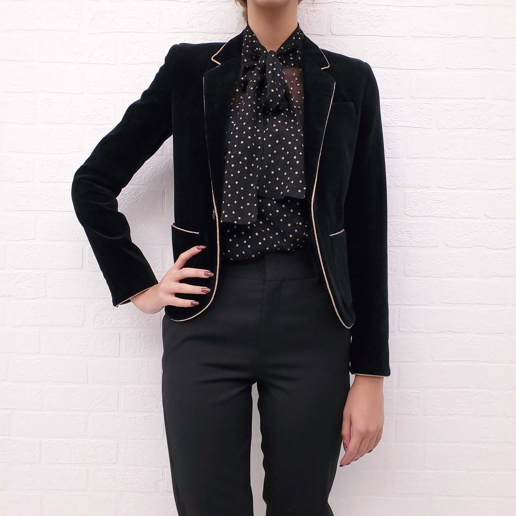 SAINT LAURENT BLACK VELVET BLAZER WITH GOLD STITCHING - SIZE 34