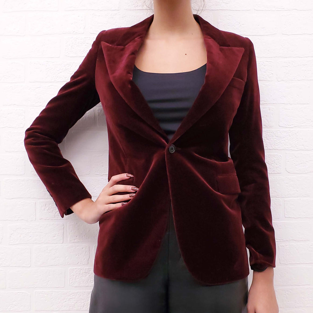 SAINT LAURENT BURGUNDY VELVET BLAZER - SIZE 34
