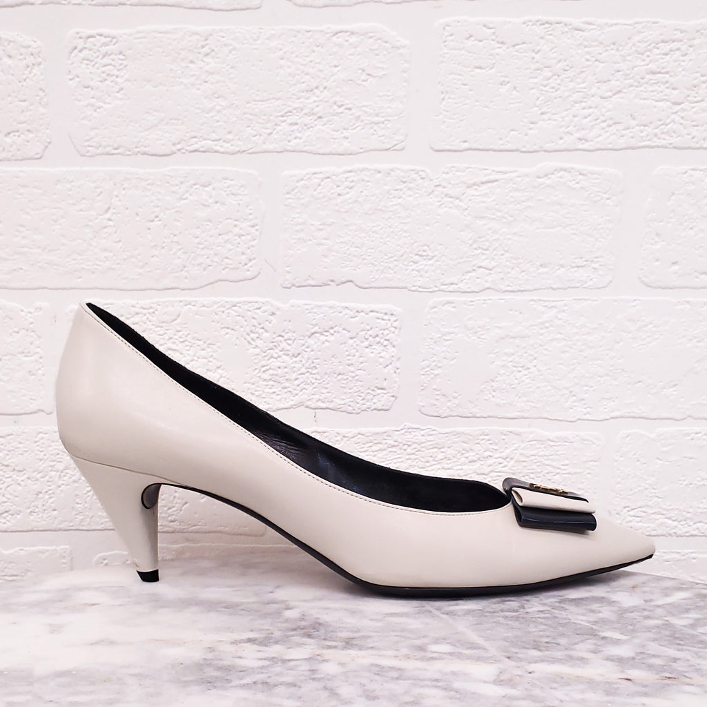 SAINT LAURENT CREAM ANAD NAVY 'ANAIS BOW' KITTEN HEELS - SIZE 41
