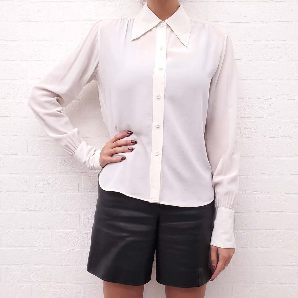 SAINT LAURENT CREAM SILK BUTTON UP BLOUSE - SIZE 34