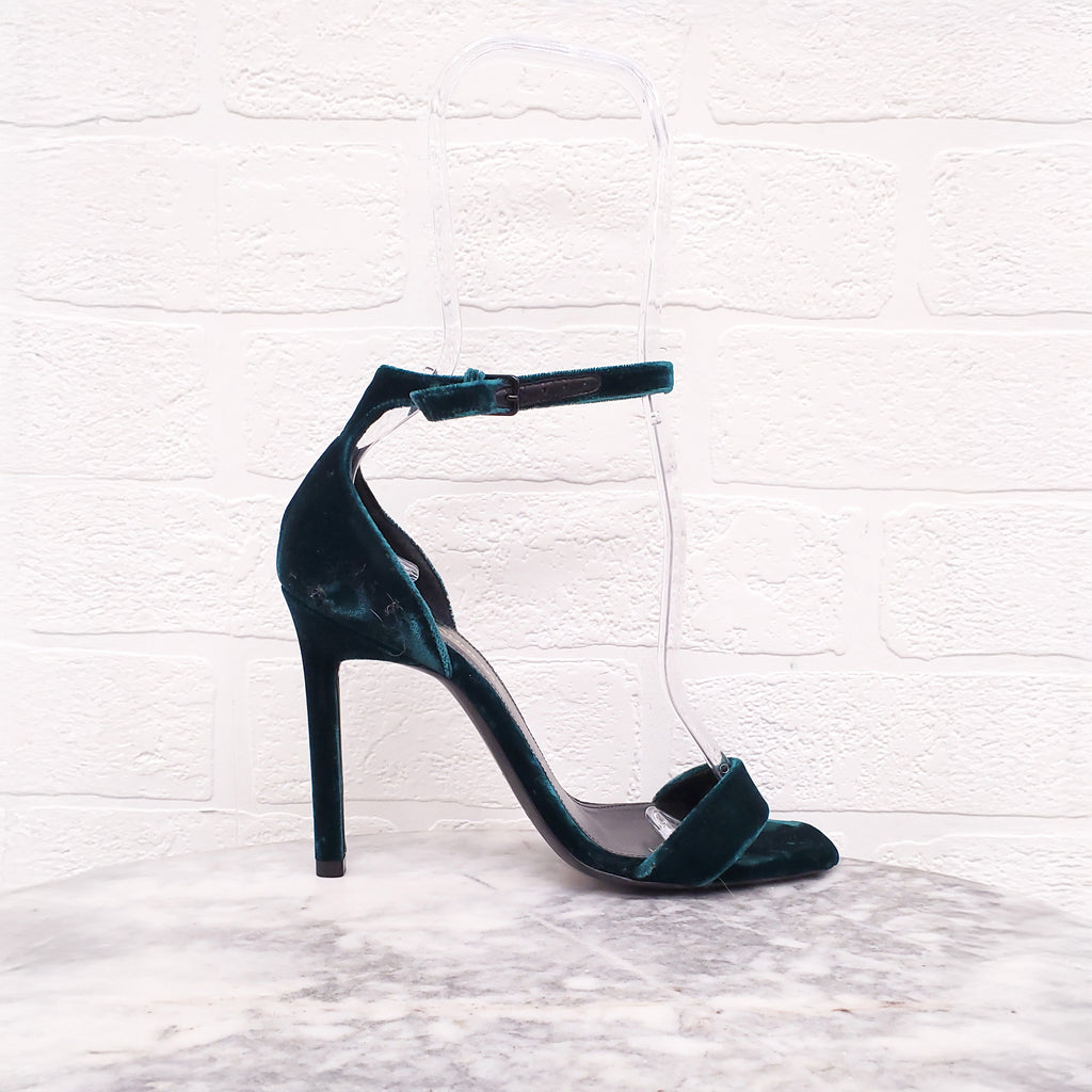 SAINT LAURENT GREEN VELVET HEELS - SIZE 35.5