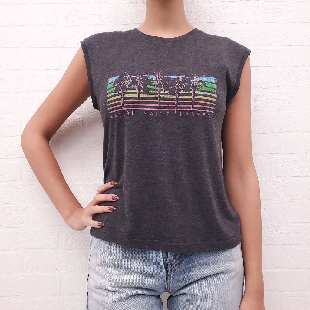 SAINT LAURENT GREY PALM TREE LOGO TANK TOP - SIZE S