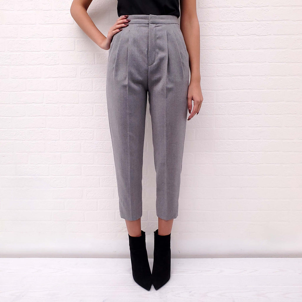 SAINT LAURENT GREY WOOL TROUSERS - SIZE 34