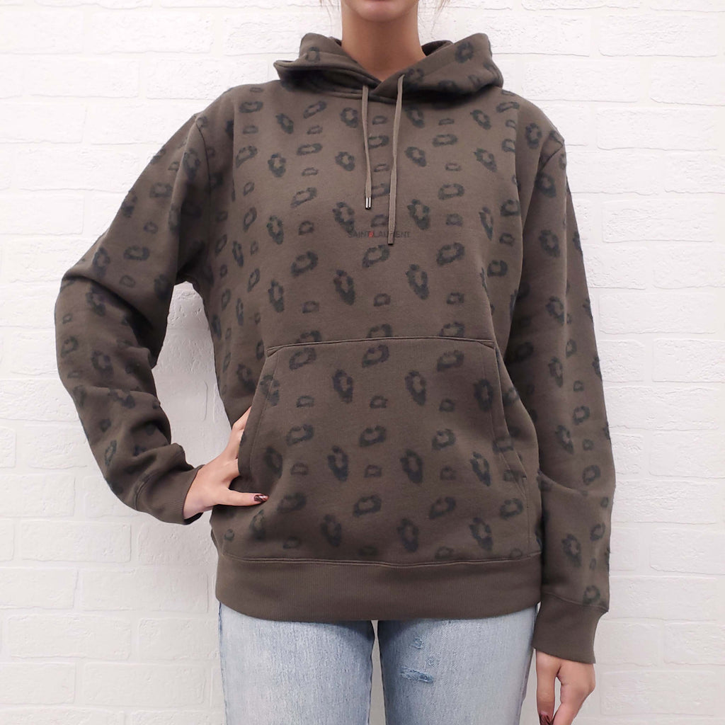SAINT LAURENT KHAKI LEOPARD LOGO SWEATSHIRT - SIZE L