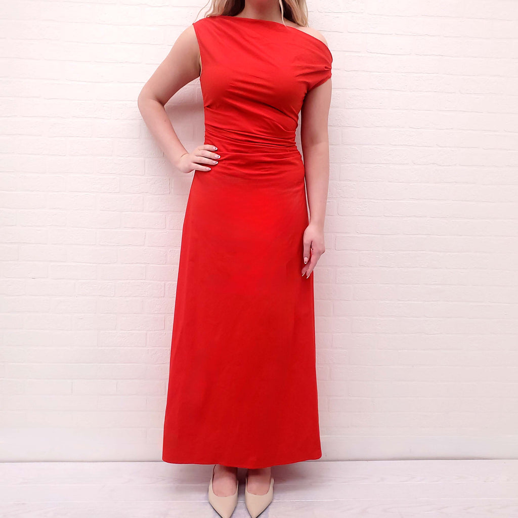 STAUD RED RUCHED DRESS - SIZE 10