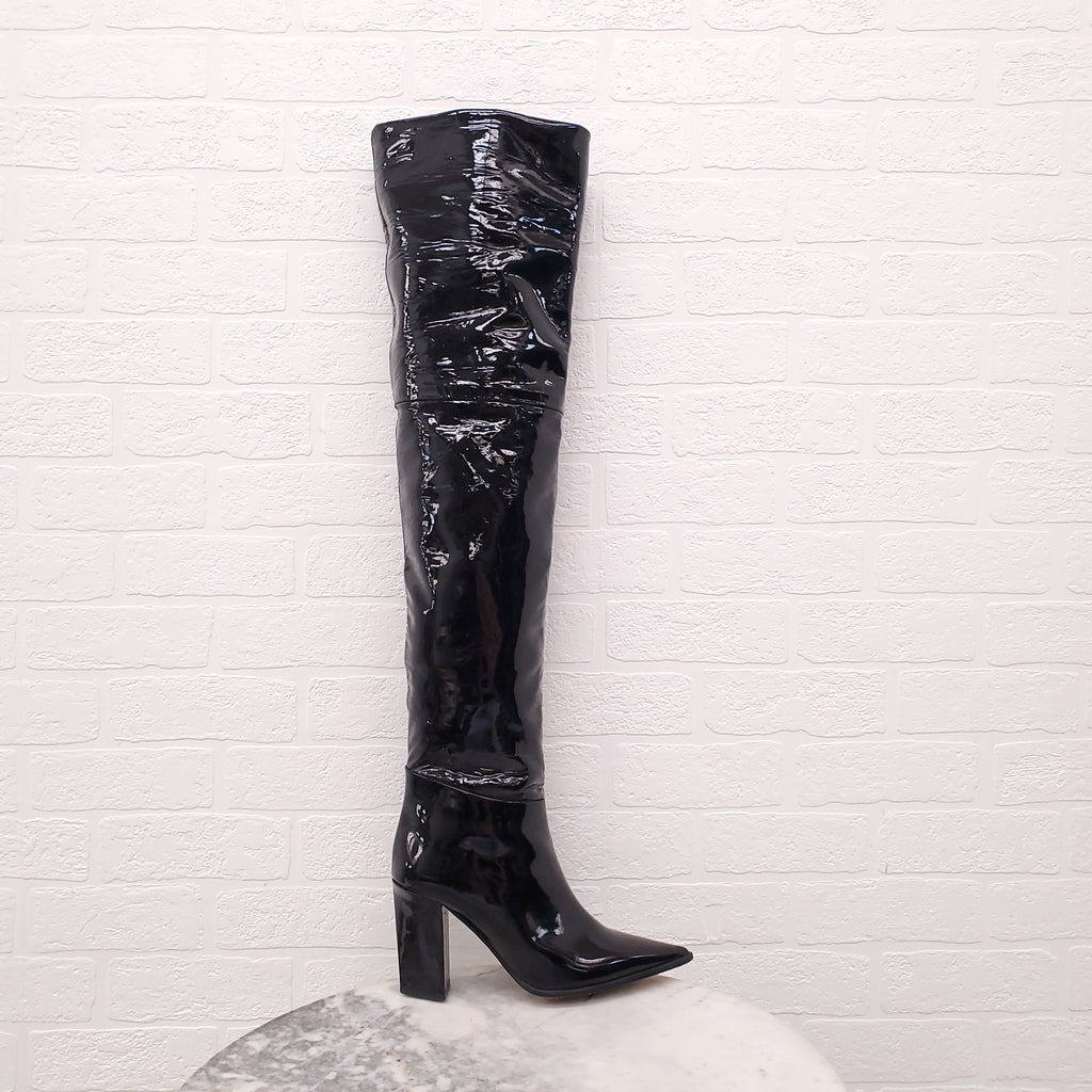 TAMARA MELLON BLACK PATENT LONG BOOTS - SIZE 38