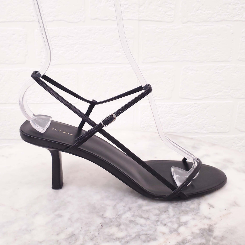 THE ROW BLACK LEATHER 'BARELY THERE' SANDALS - SIZE 38