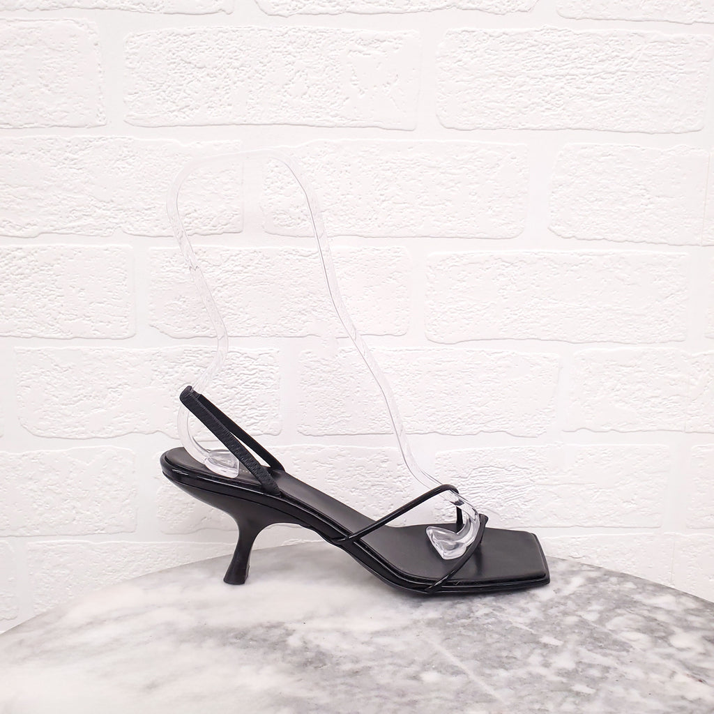 THE ROW BLACK LEATHER 'BARELY THERE' KITTEN HEELS - SIZE 38