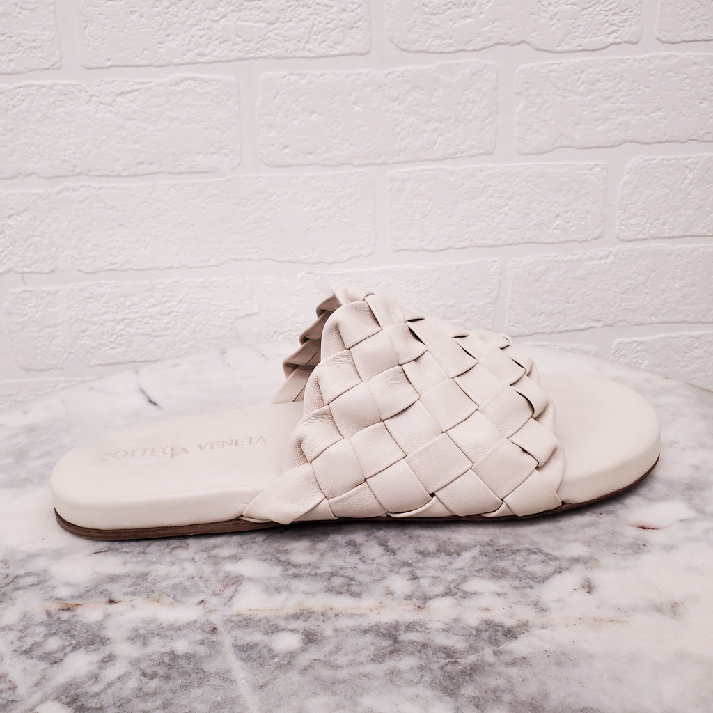 BOTTEGA VENETA CREAM WOVEN LEATHER SLIDES - SIZE 40