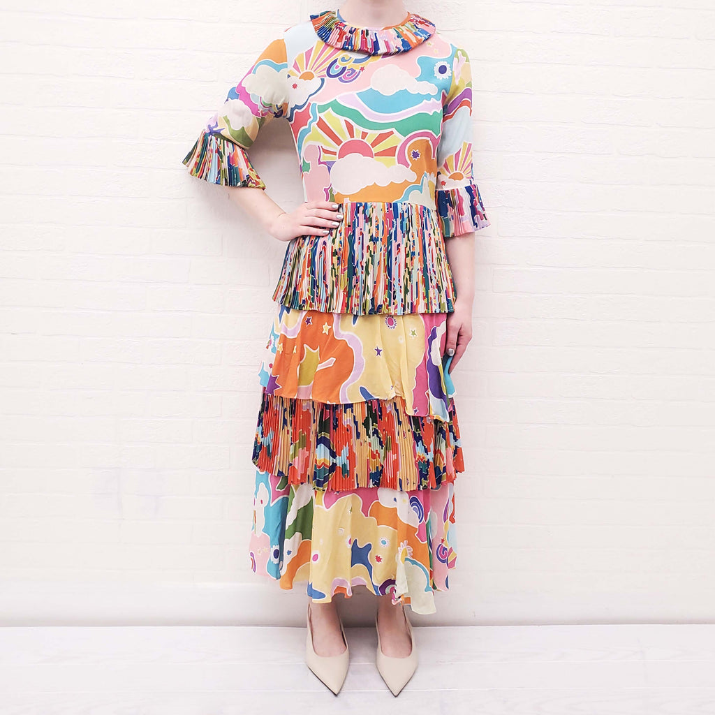 CELIA B RUFFLE PATTERNED DRESS - SIZE S