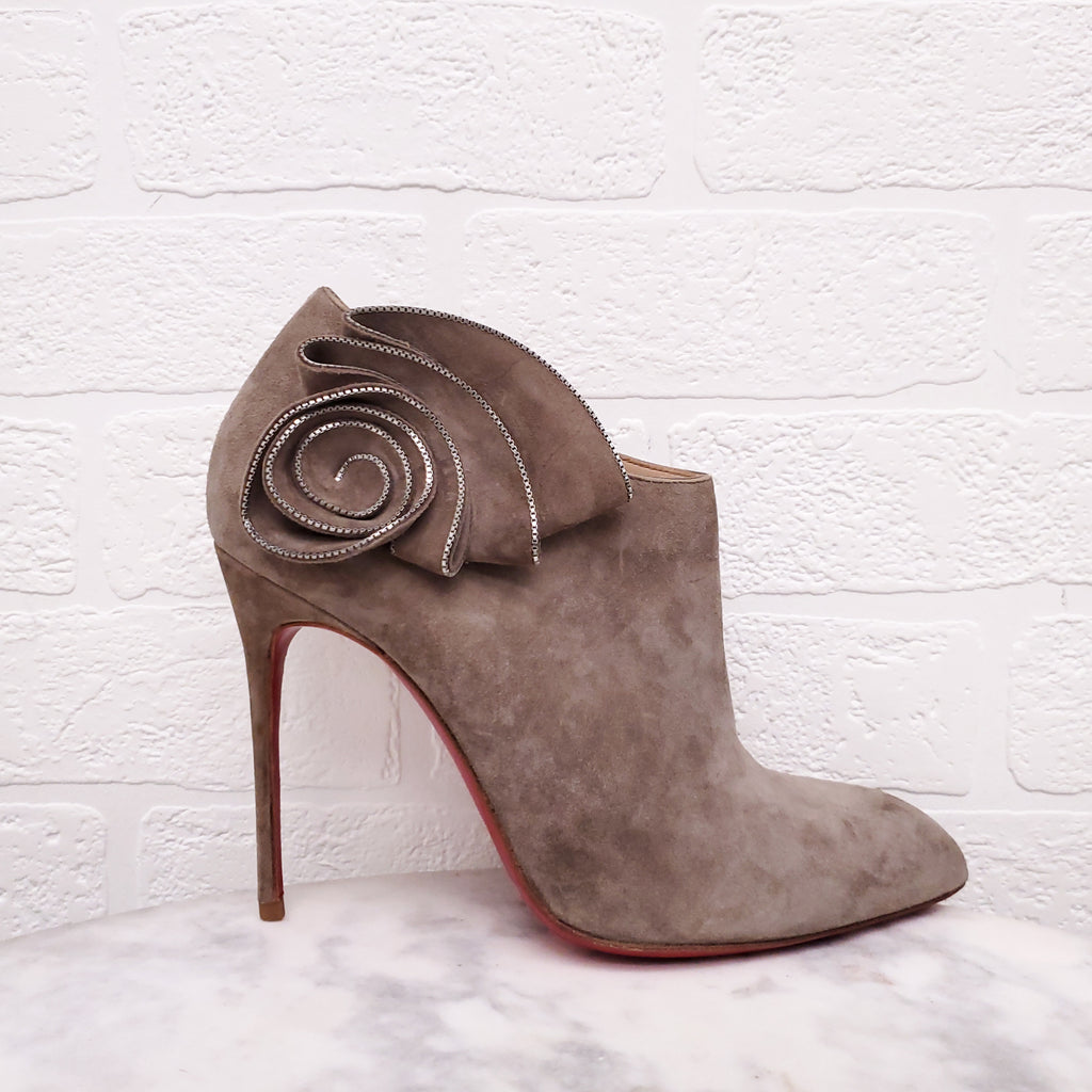 CHRISTIAN LOUBOUTIN SUEDE BOOTS WITH FLORAL METALLIC DETAIL - SIZE 38
