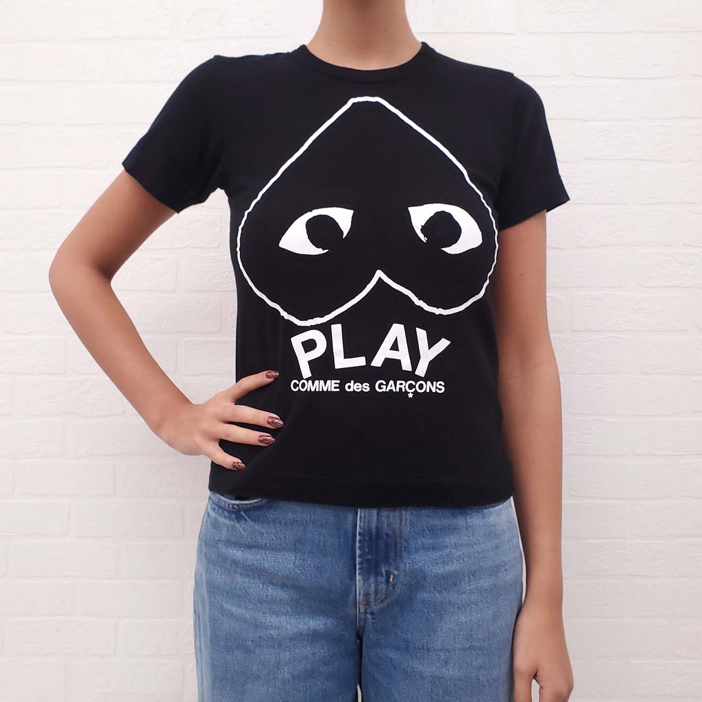 COMMES DES GARÇONS PLAY BLACK AND WHITE GRAPHIC T-SHIRT - SIZE S