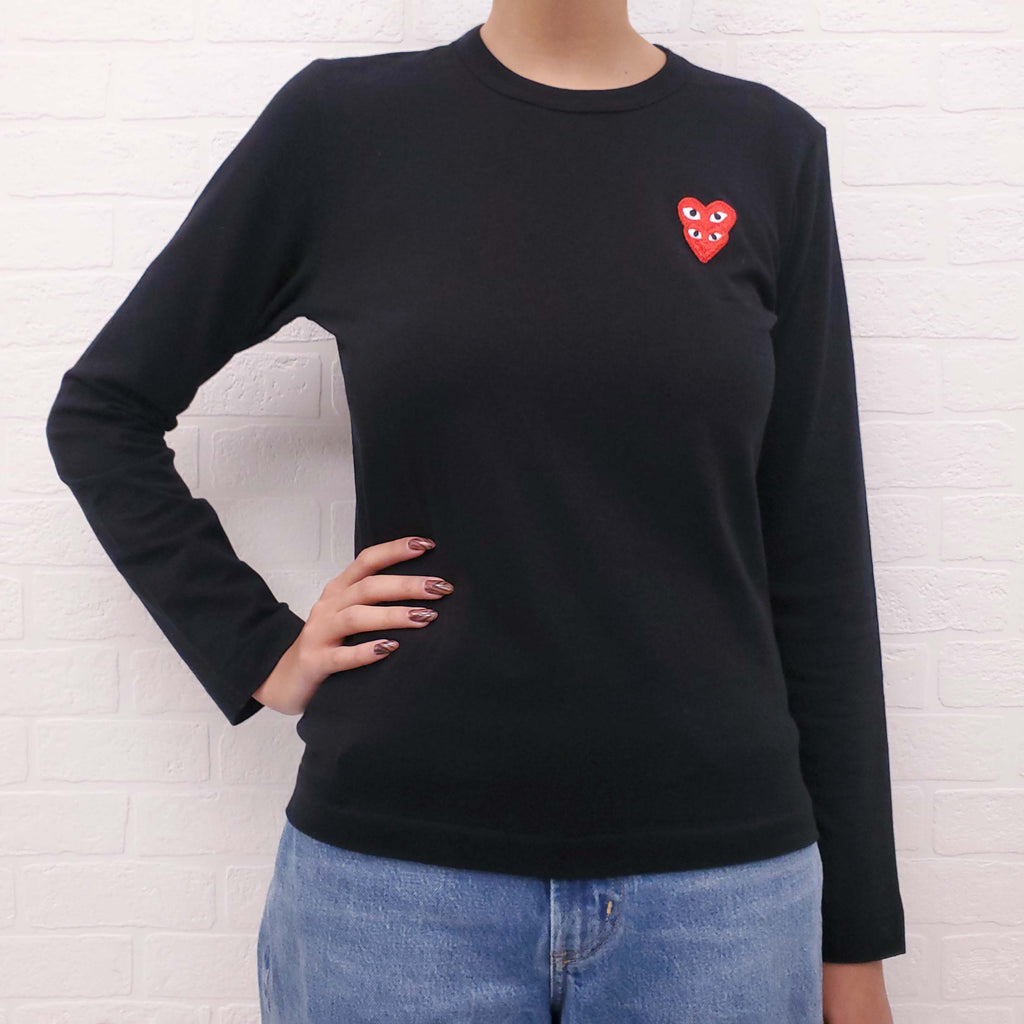 COMMES DES GARÇONS PLAY BLACK DOUBLE HEART LONG SLEEVE SHIRT - SIZE M