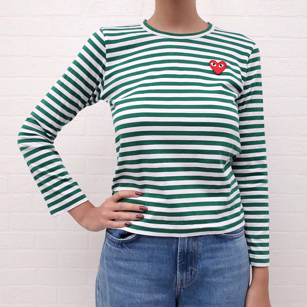 COMMES DES GARÇONS PLAY GREEN STRIPED LONG SLEEVE SHIRT - SIZE M
