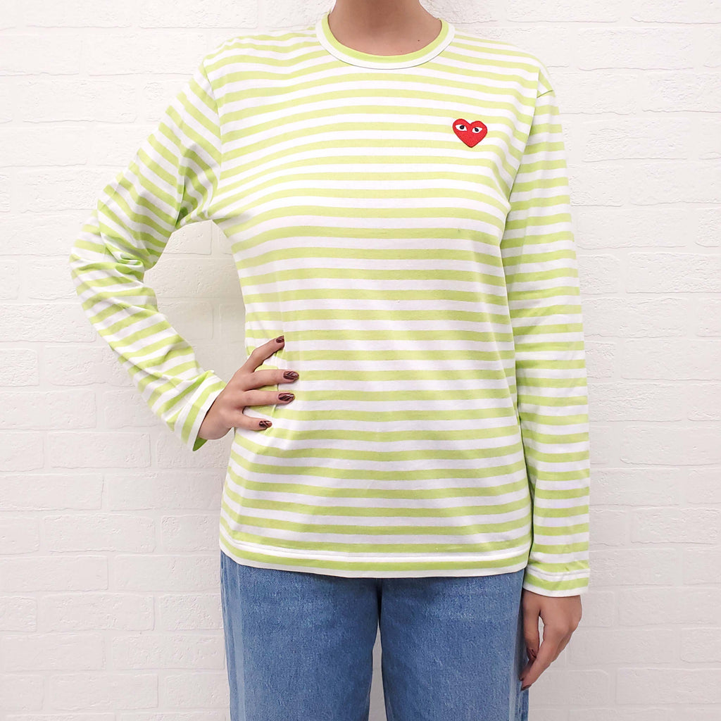 COMMES DES GARÇONS PLAY LIME GREEN STRIPED LONG SLEEVE SHIRT - SIZE M