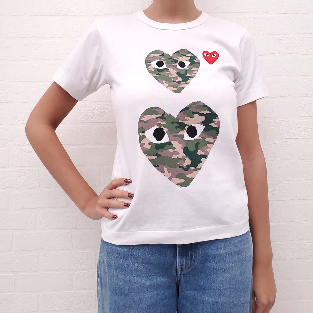 COMMES DES GARÇONS PLAY WHITE CAMO T-SHIRT - SIZE M