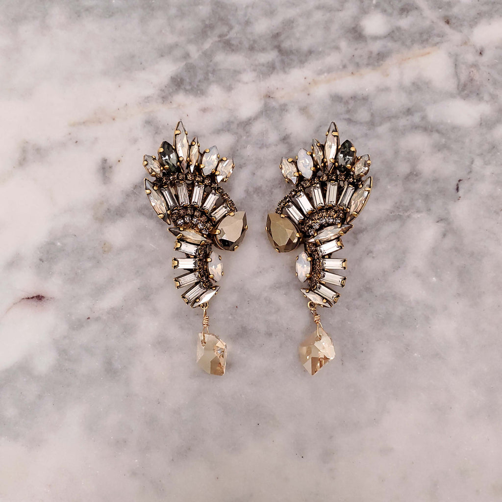 ERICKSON BEAMON GOLD AND PEWTER CRYSTAL EARRINGS