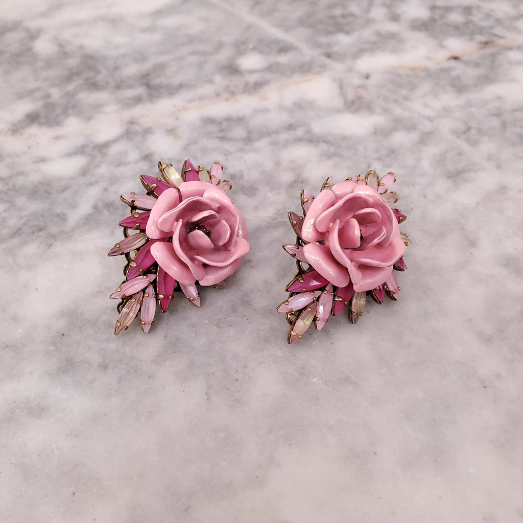 ERICKSON BEAMON PINK CRYSTAL FLOWER EARRINGS