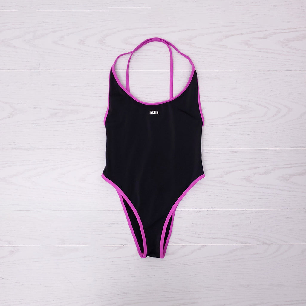 GCDS BLACK AND PURPLE LOGO SWIMSUIT - SIZE S