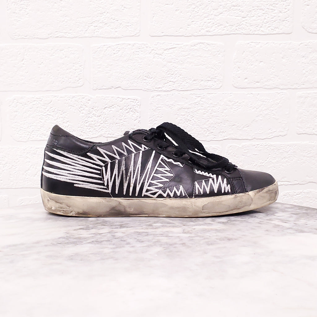 GOLDEN GOOSE BLACK AND WHITE PATTERNED ‘SUPERSTARS’ SNEAKERS - SIZE 37
