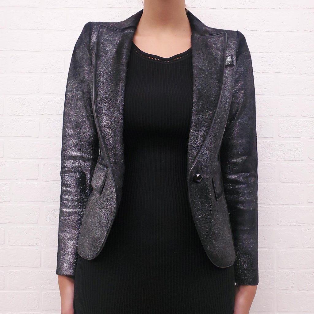 GUCCI BLACK LEATHER AND METALLIC CALF HAIR BLAZER - SIZE 36
