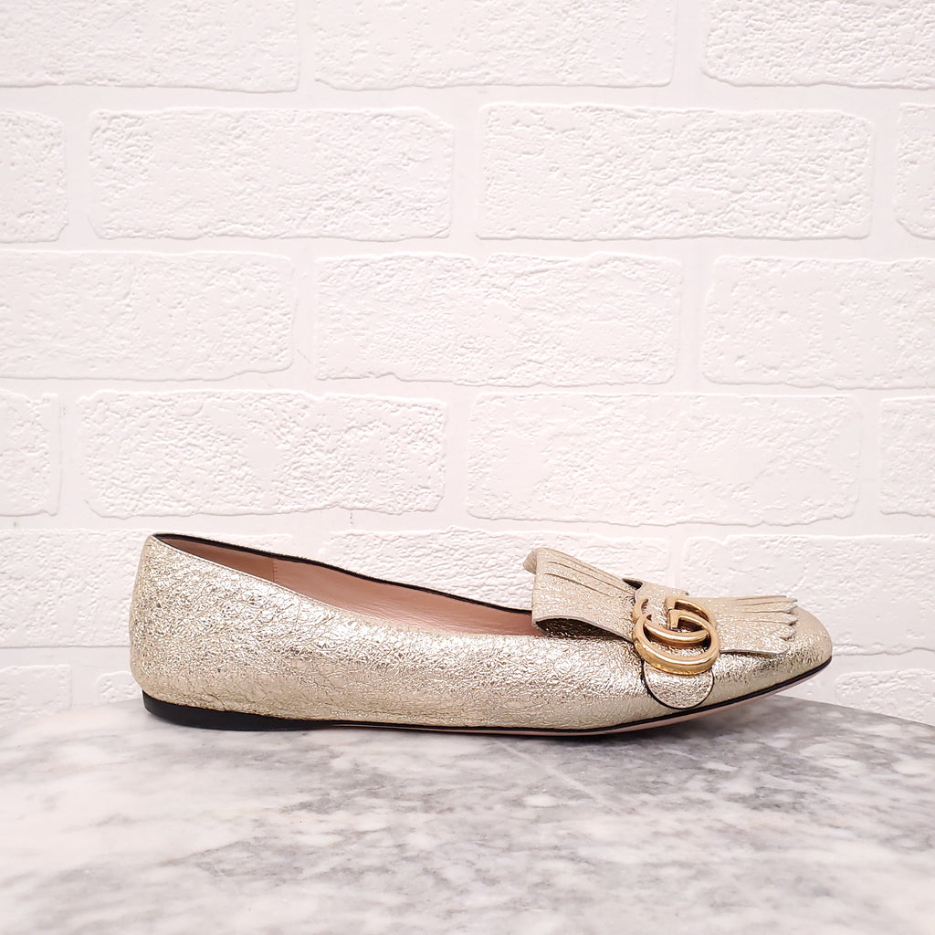 GUCCI GOLD MARMONT FRINGE LOAFERS - SIZE 40