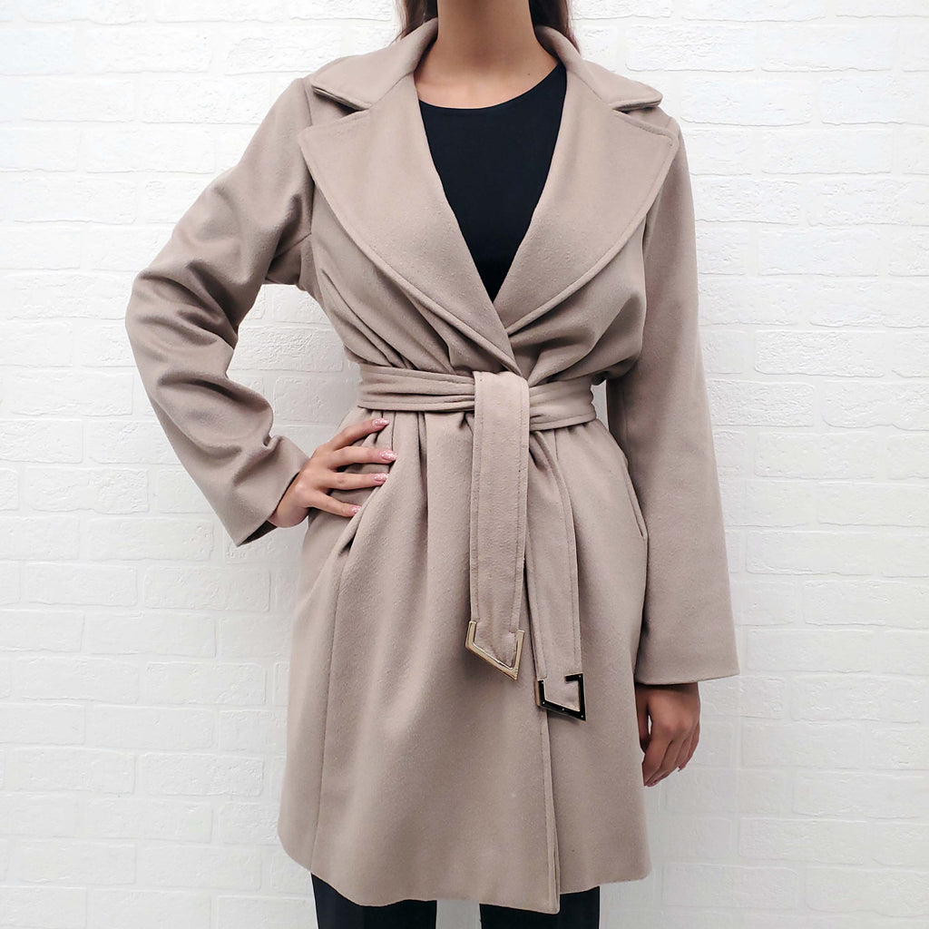 GUCCI TAUPE WOOL JACKET WITH LOGO BELT - SIZE 40