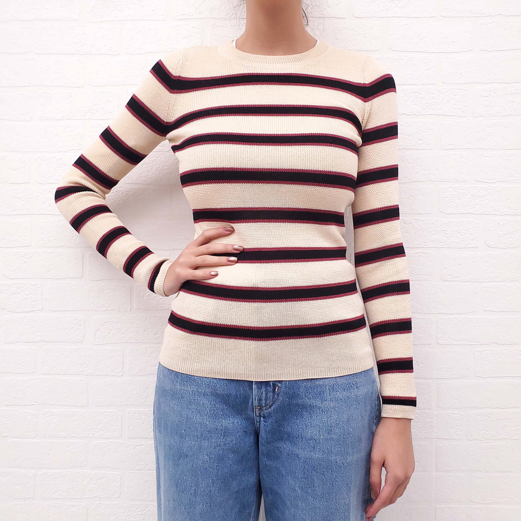 ISABEL MARANT ÉTOILE CREAM, BURGUNDY AND BLACK STRIPED SWEATER - SIZE 36