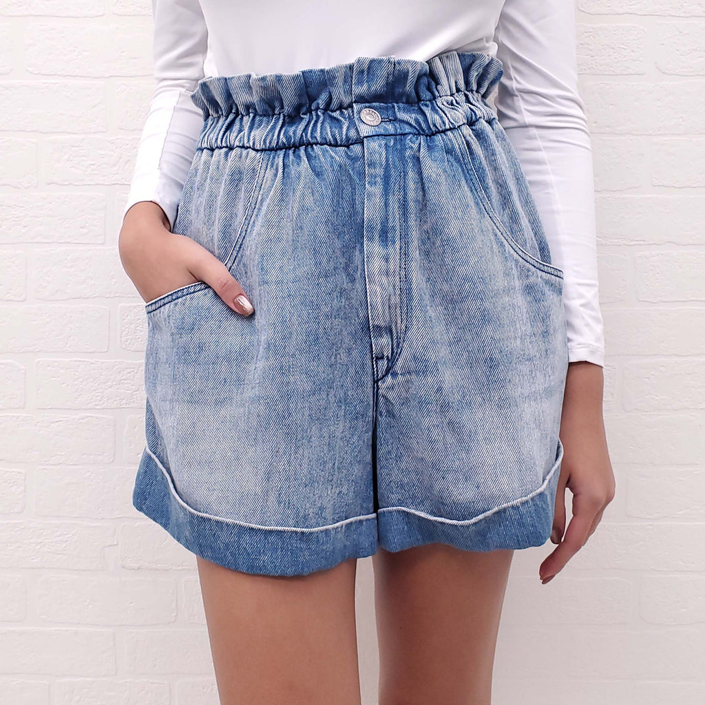 ISABEL MARANT ÉTOILE DENIM PAPER BAG SHORTS - SIZE 36