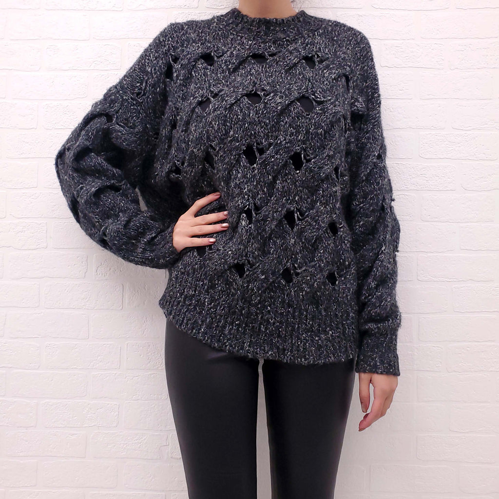 ISABEL MARANT ÉTOILE GREY CUT OUT KNIT SWEATER - SIZE 36