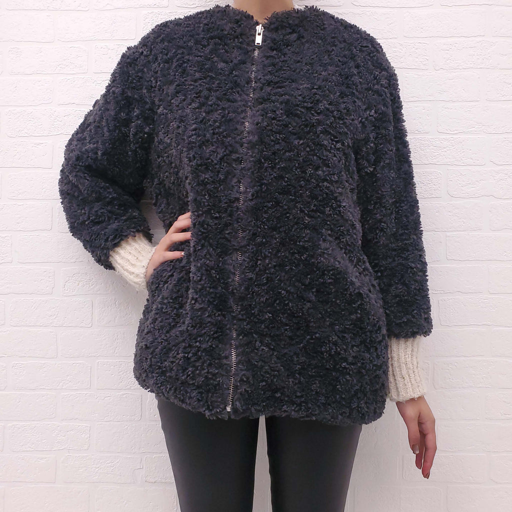 ISABEL MARANT ÉTOILE GREY FAUX SHEARLING JACKET - SIZE 38