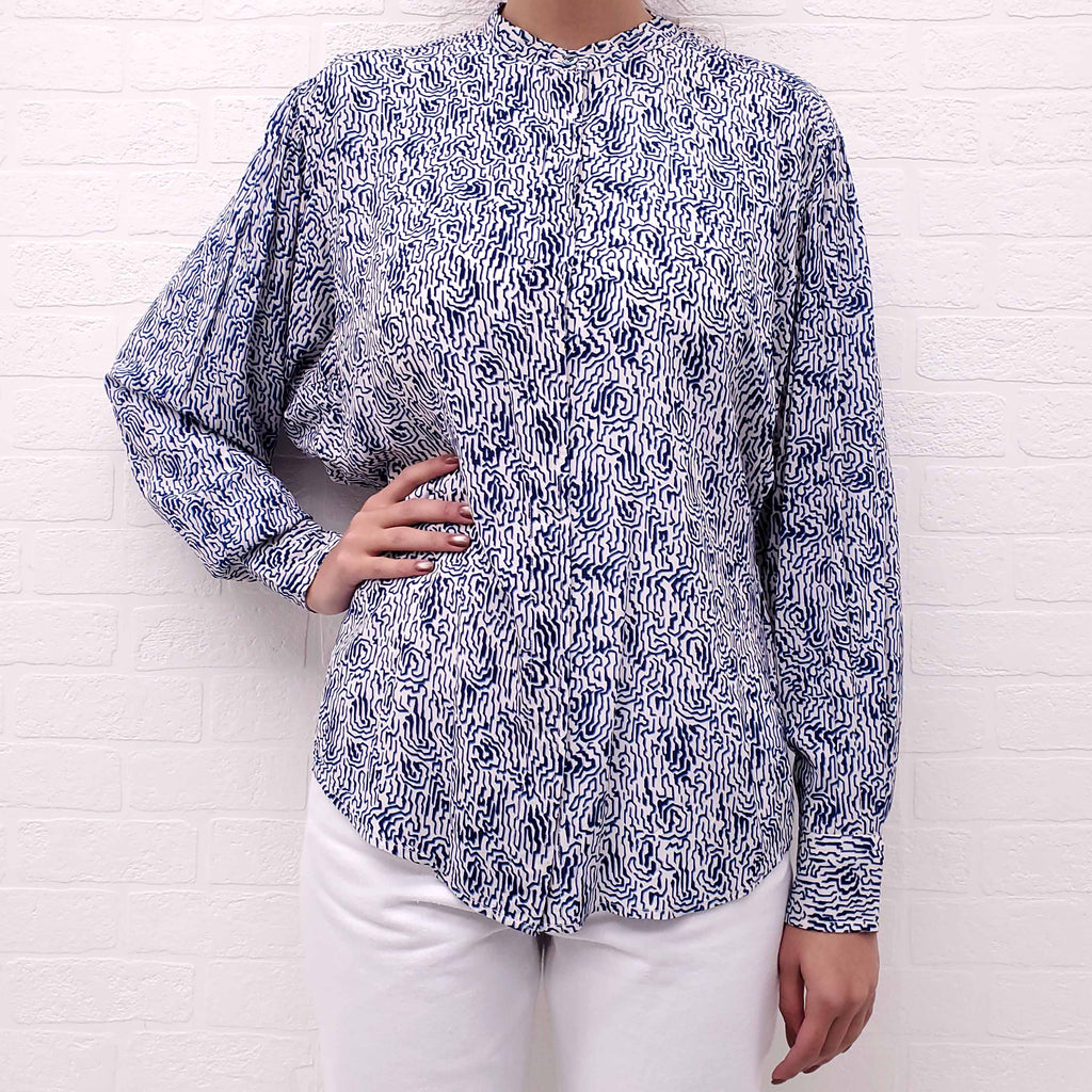 ISABEL MARANT ÉTOILE OVERSIZED WHITE AND BLUE PATTERNED TUNIC - SIZE 34