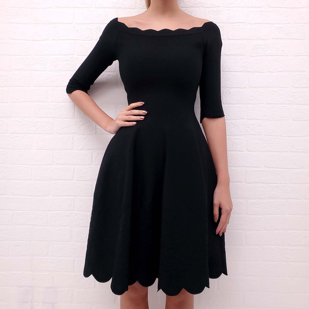 ALEXANDER MCQUEEN BLACK OFF THE SHOULDER DRESS - SIZE S