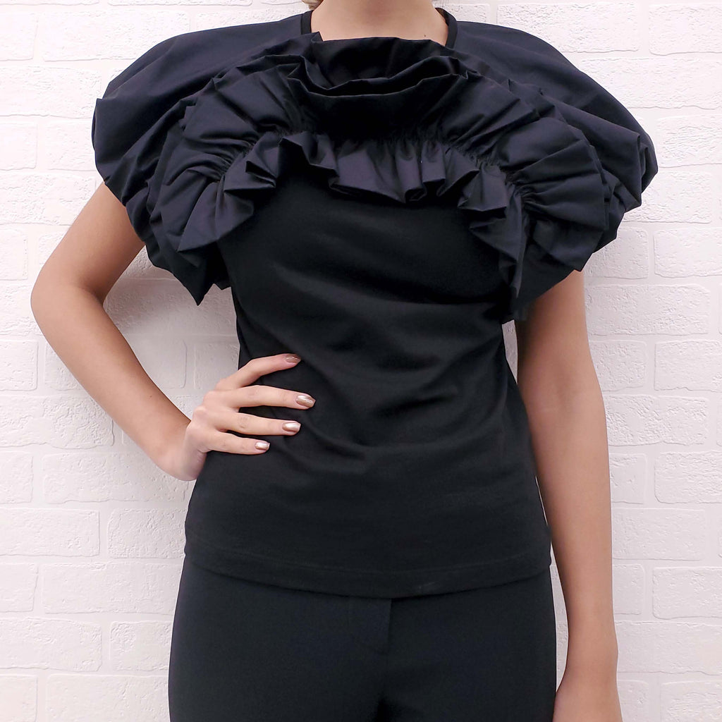 ALEXANDER MCQUEEN BLACK PLEATED PUFF SHOULDER T-SHIRT - SIZE 36