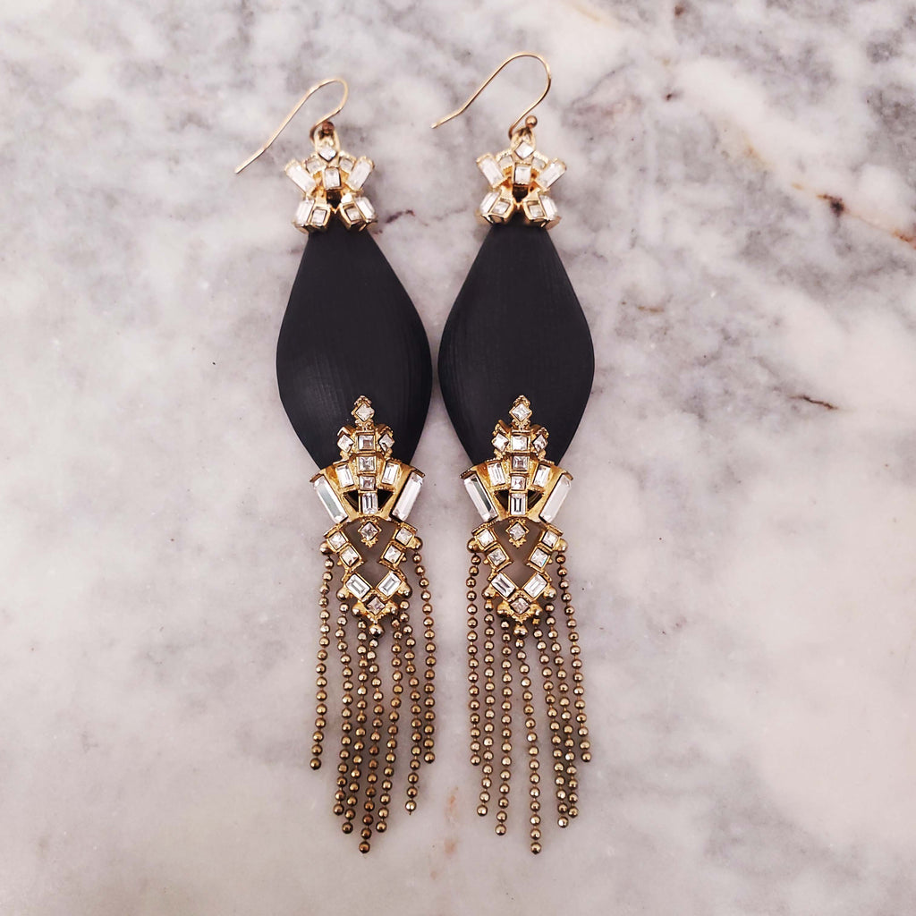 ALEXIS BITTAR BLACK AND GOLD CRYSTAL EARRINGS