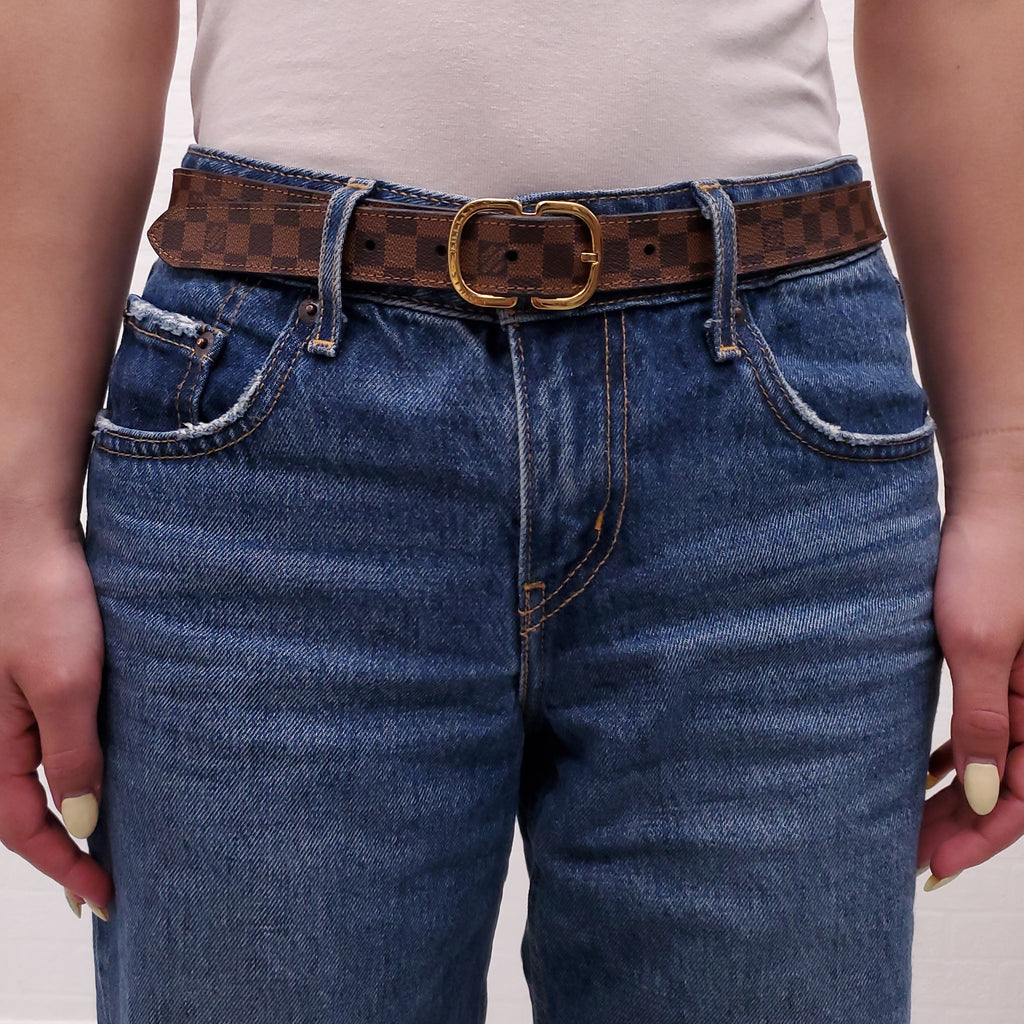 LOUIS VUITTON DAMIER LOGO BELT - SIZE 80
