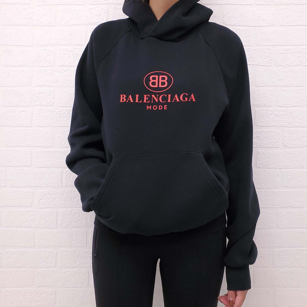 BALENCIAGA BLACK AND RED LOGO SWEATSHIRT - SIZE S