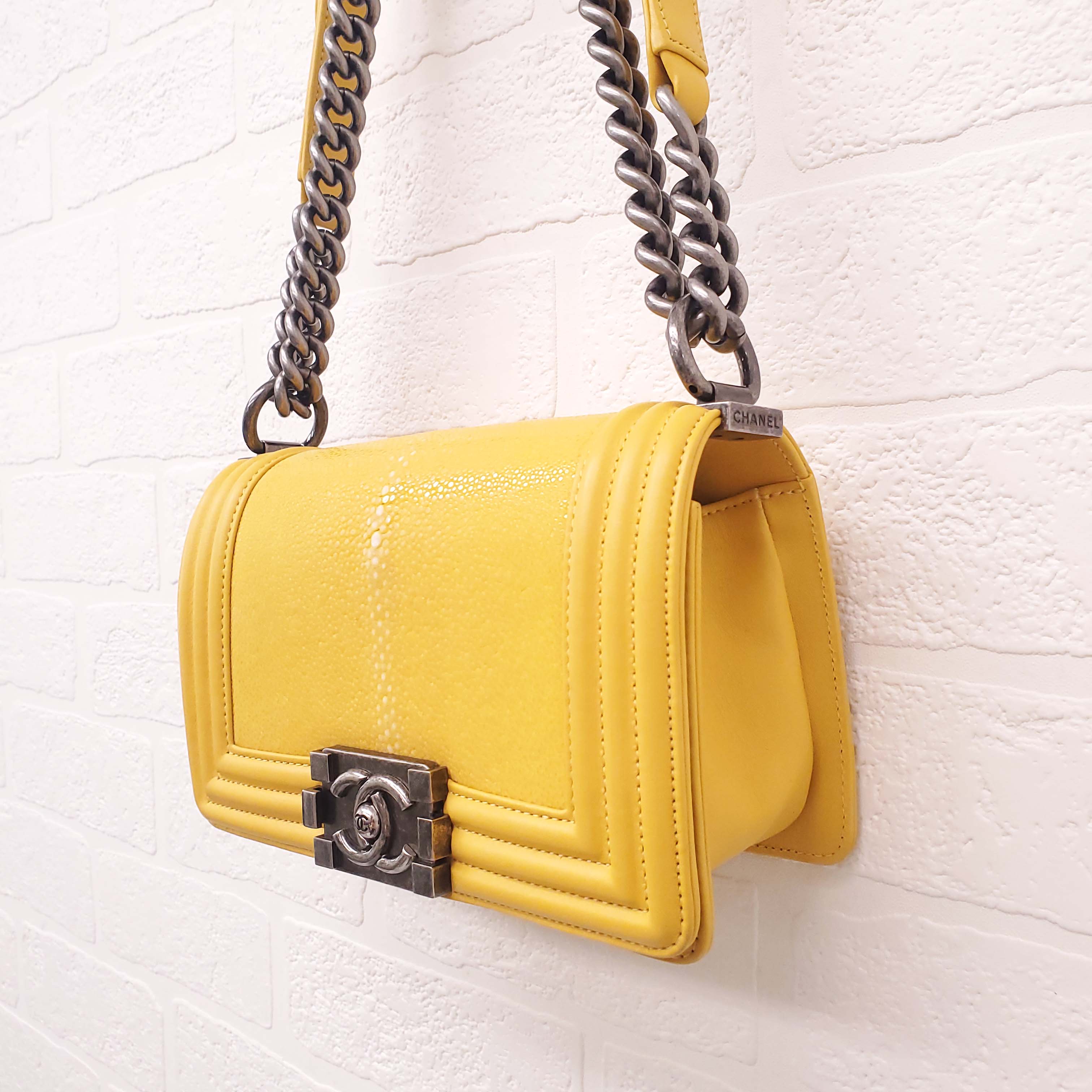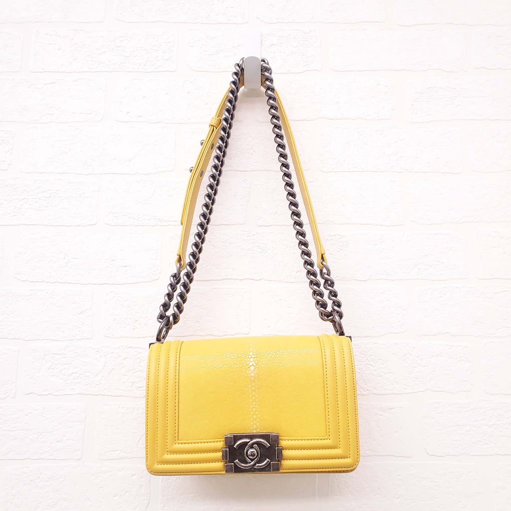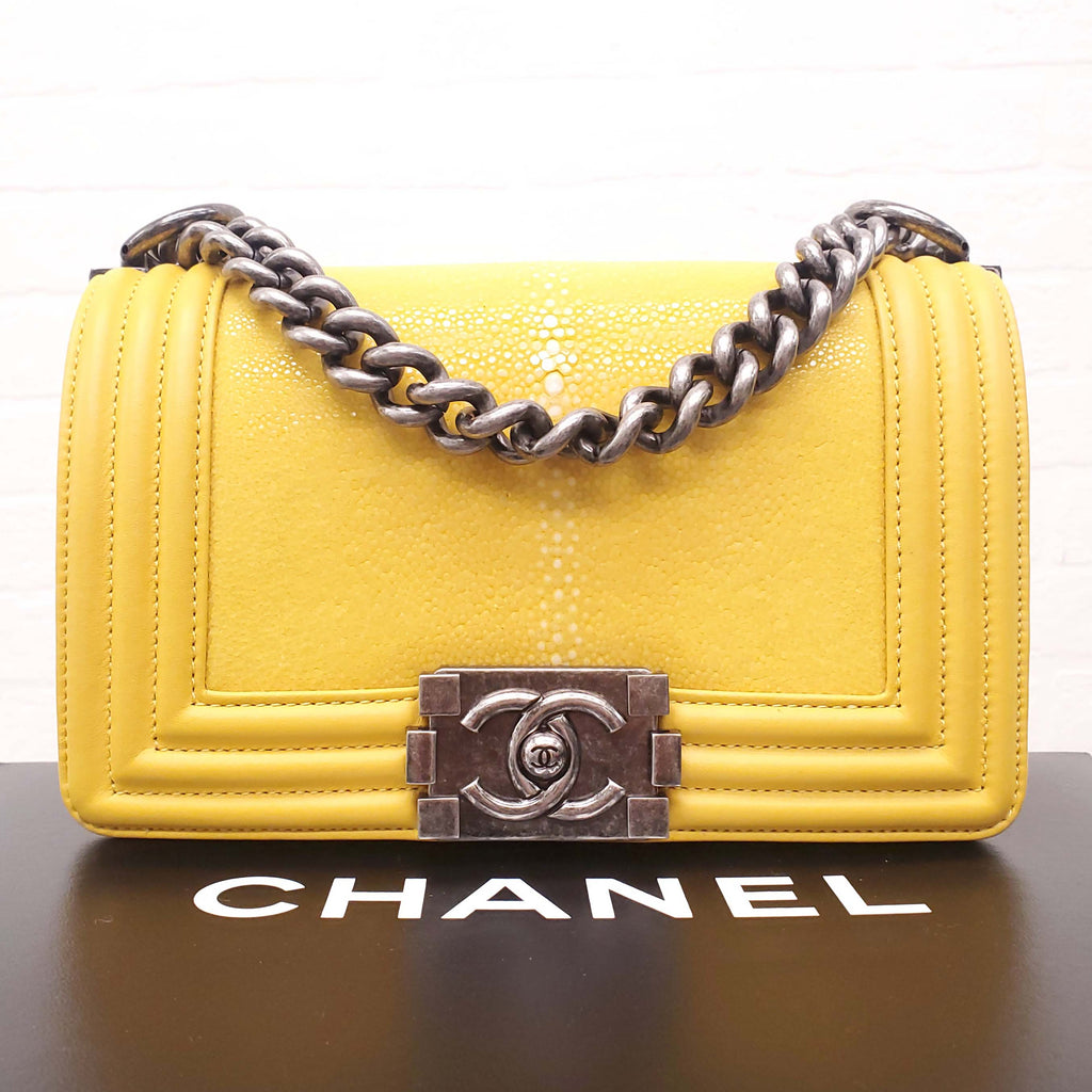 CHANEL BRIGHT YELLOW STINGRAY BOY BAG