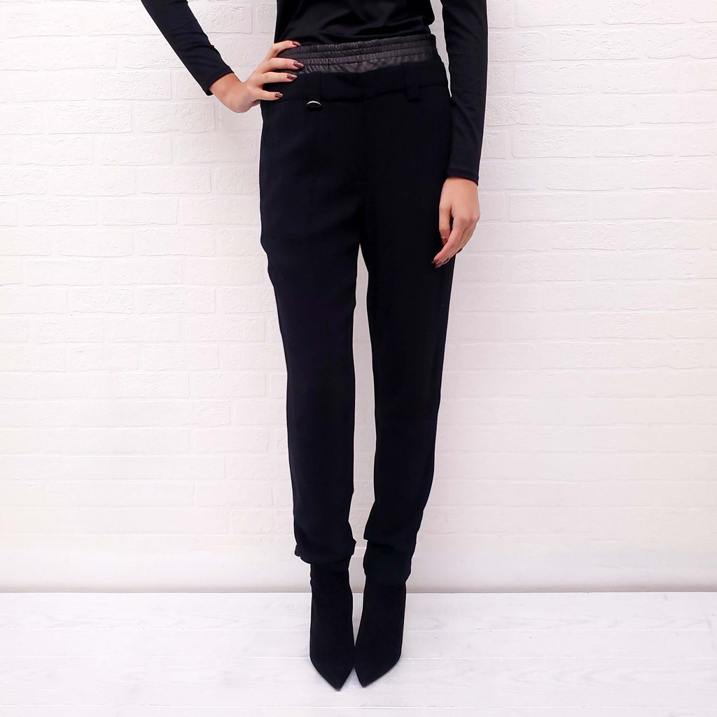 A.L.C. BLACK TROUSERS WITH LEATHER WAIST BAND DETAIL - SIZE 4