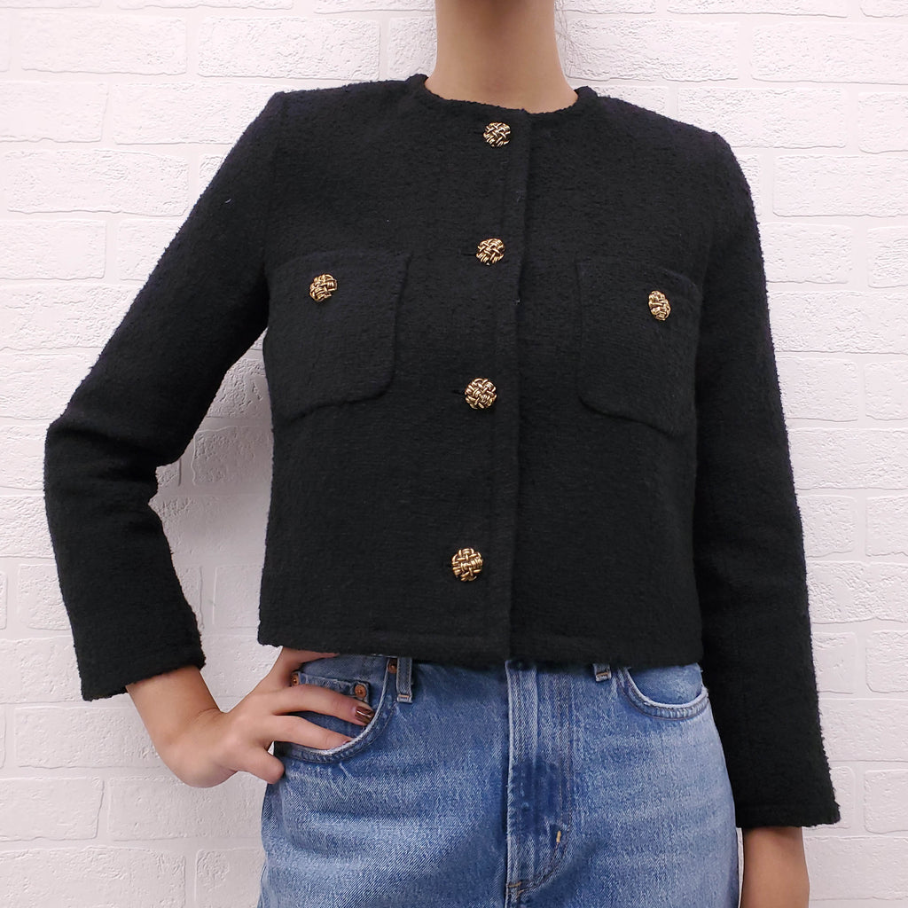BA&SH BLACK TWEED JACKET WITH GOLD BUTTONS - SIZE 0 (XS)