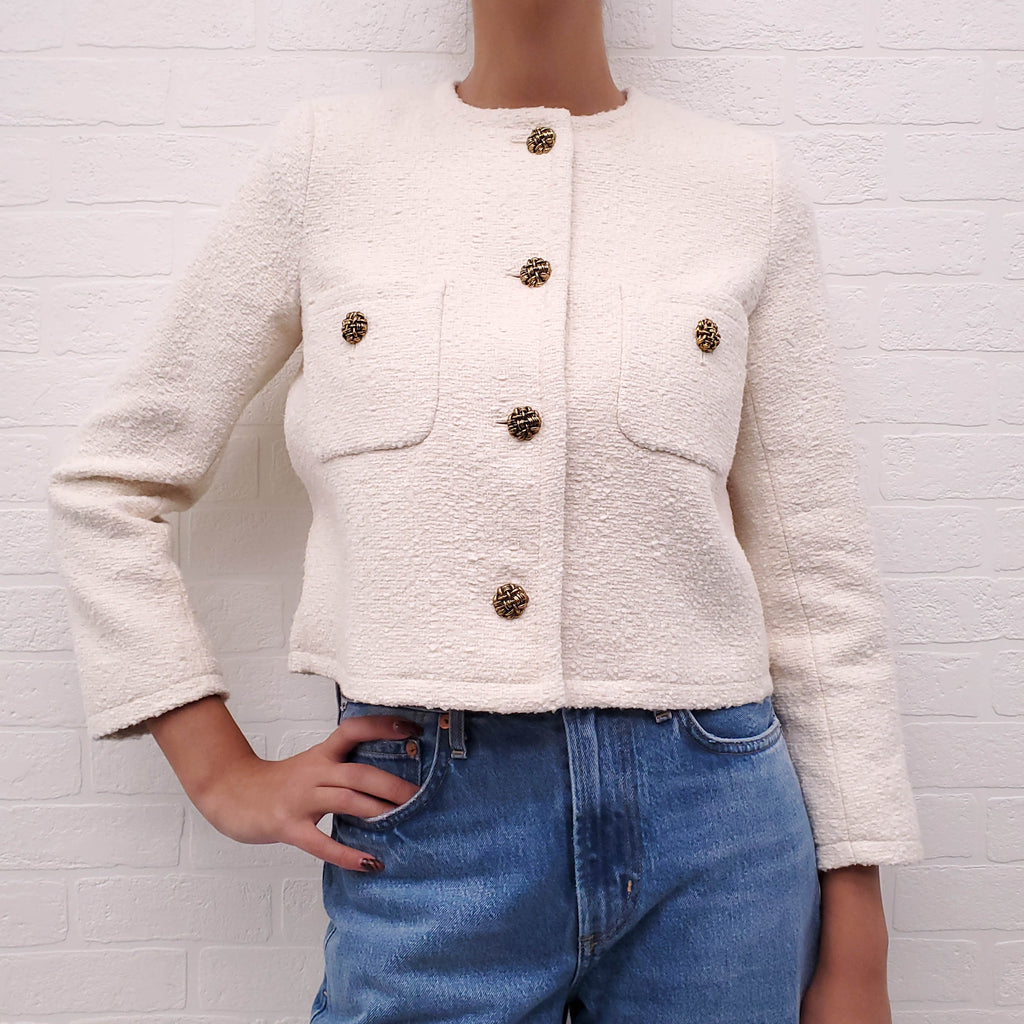 BA&SH CREAM TWEED JACKET WITH GOLD BUTTONS - SIZE 0 (XS)