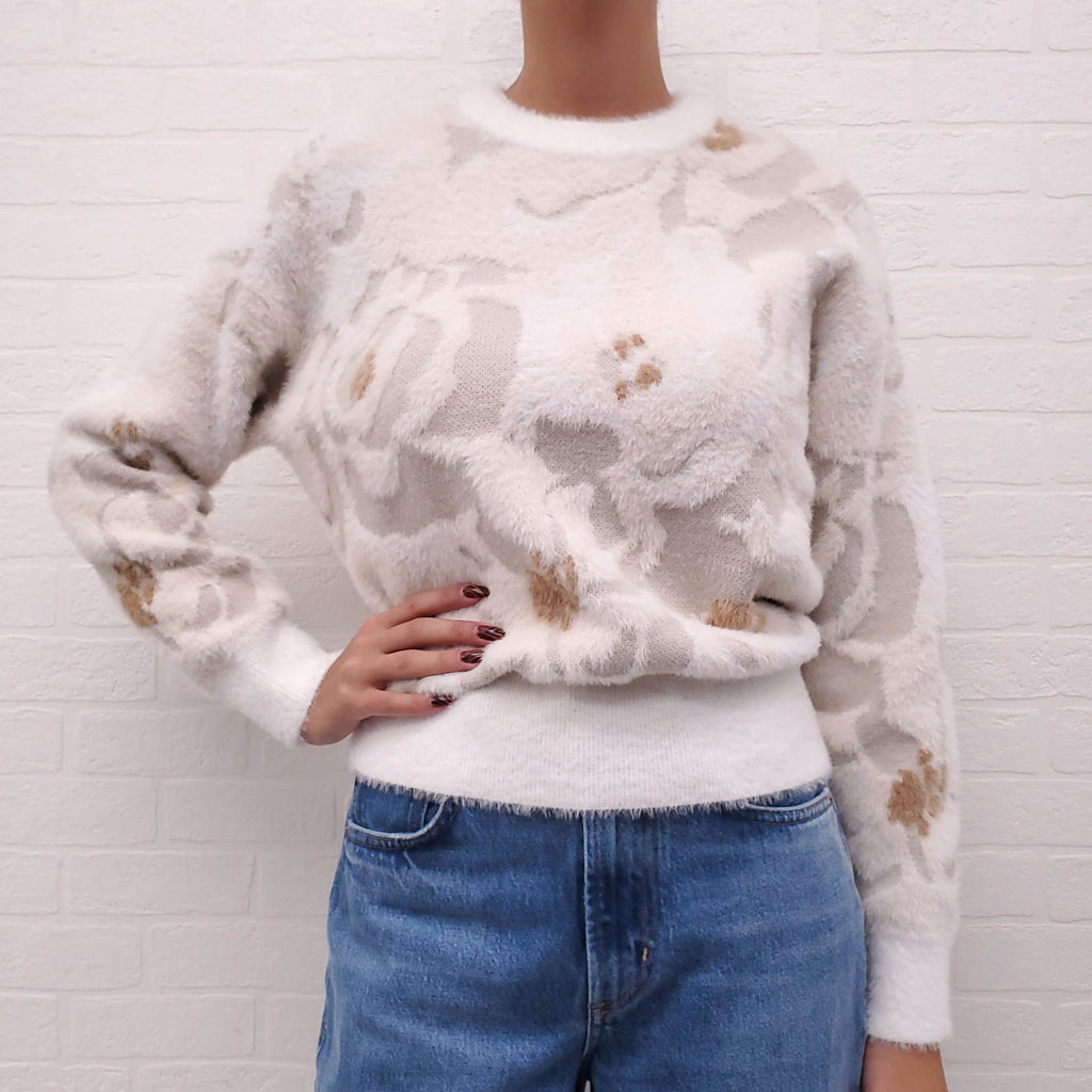 LACOSTE FLORAL GOLD AND CREAM SWEATER - SIZE 32 (FIT OVERSIZED)
