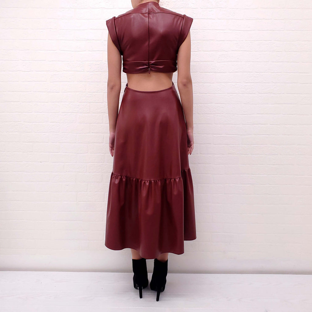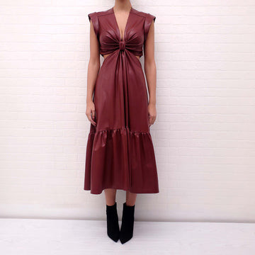A.L.C. BURGUNDY VEGAN LEATHER DRESS WITH KNOT DETAIL - SIZE 4