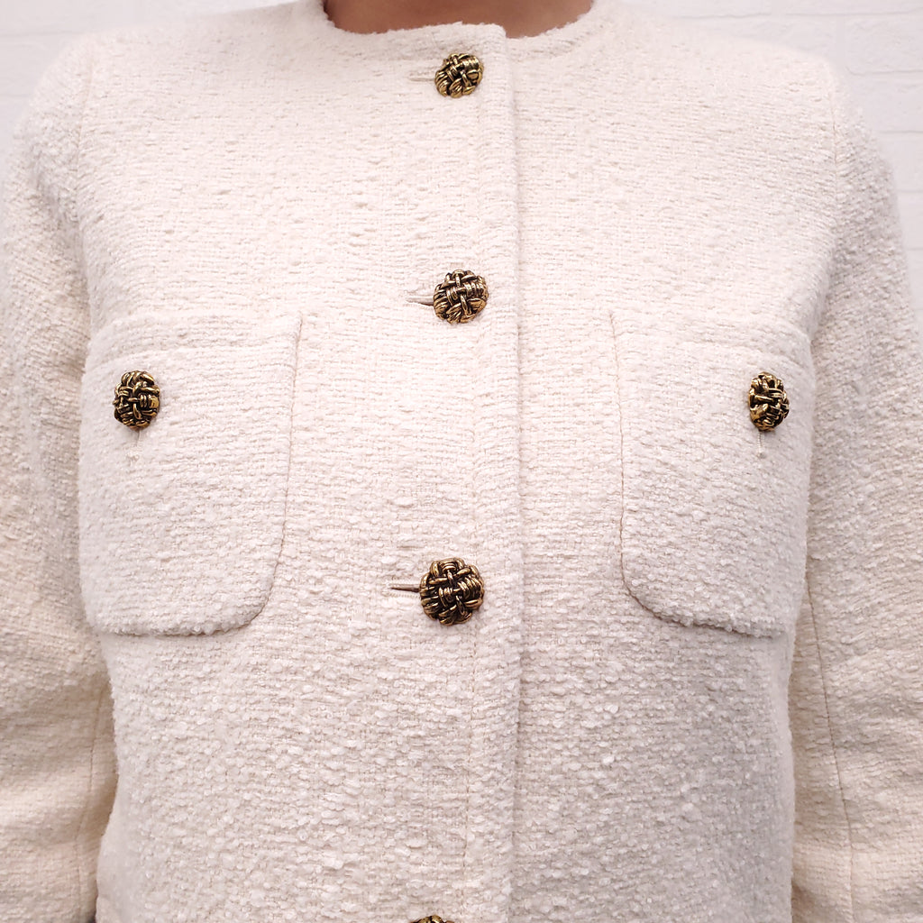 BA&SH CREAM TWEED JACKET WITH GOLD BUTTONS - SIZE 0 (XS)
