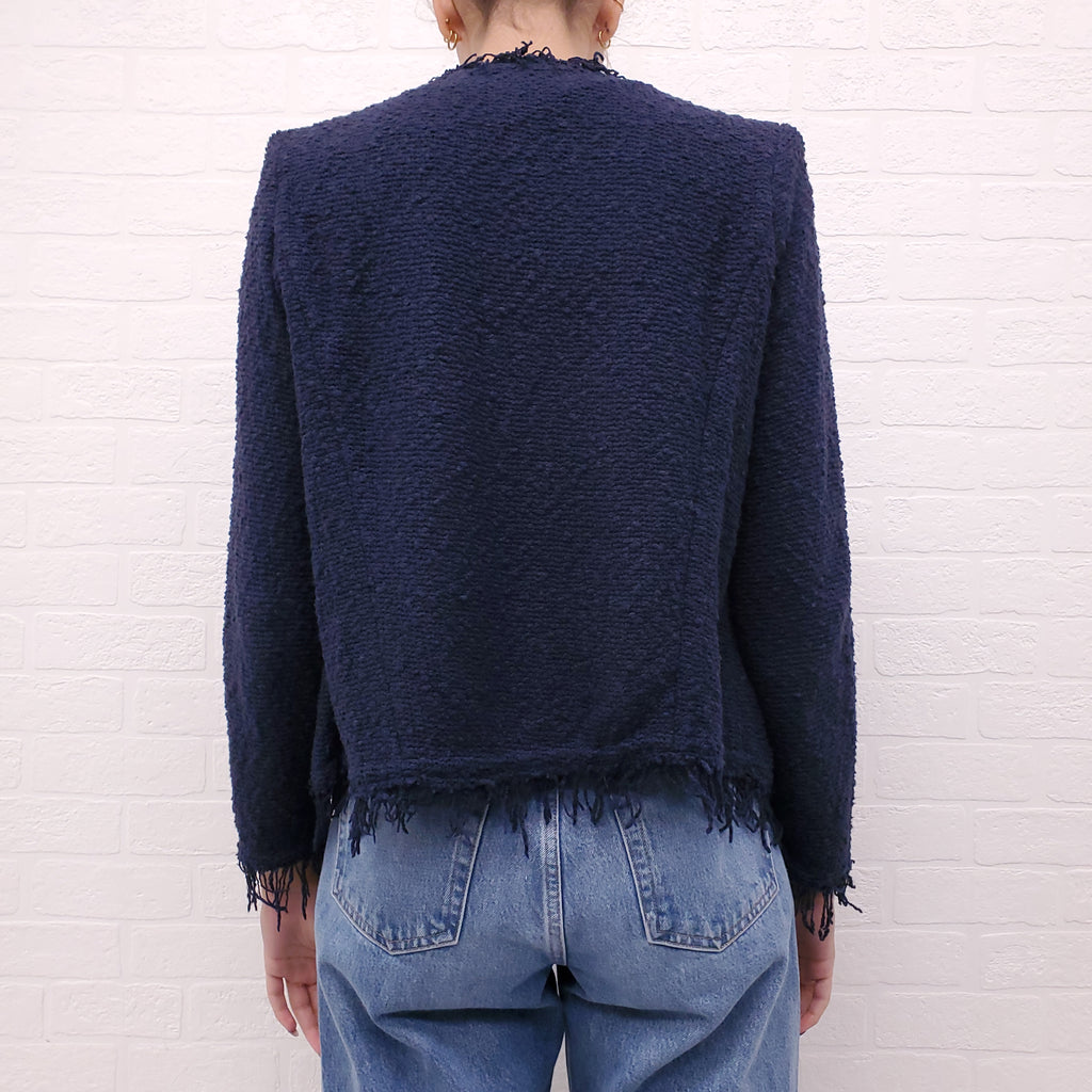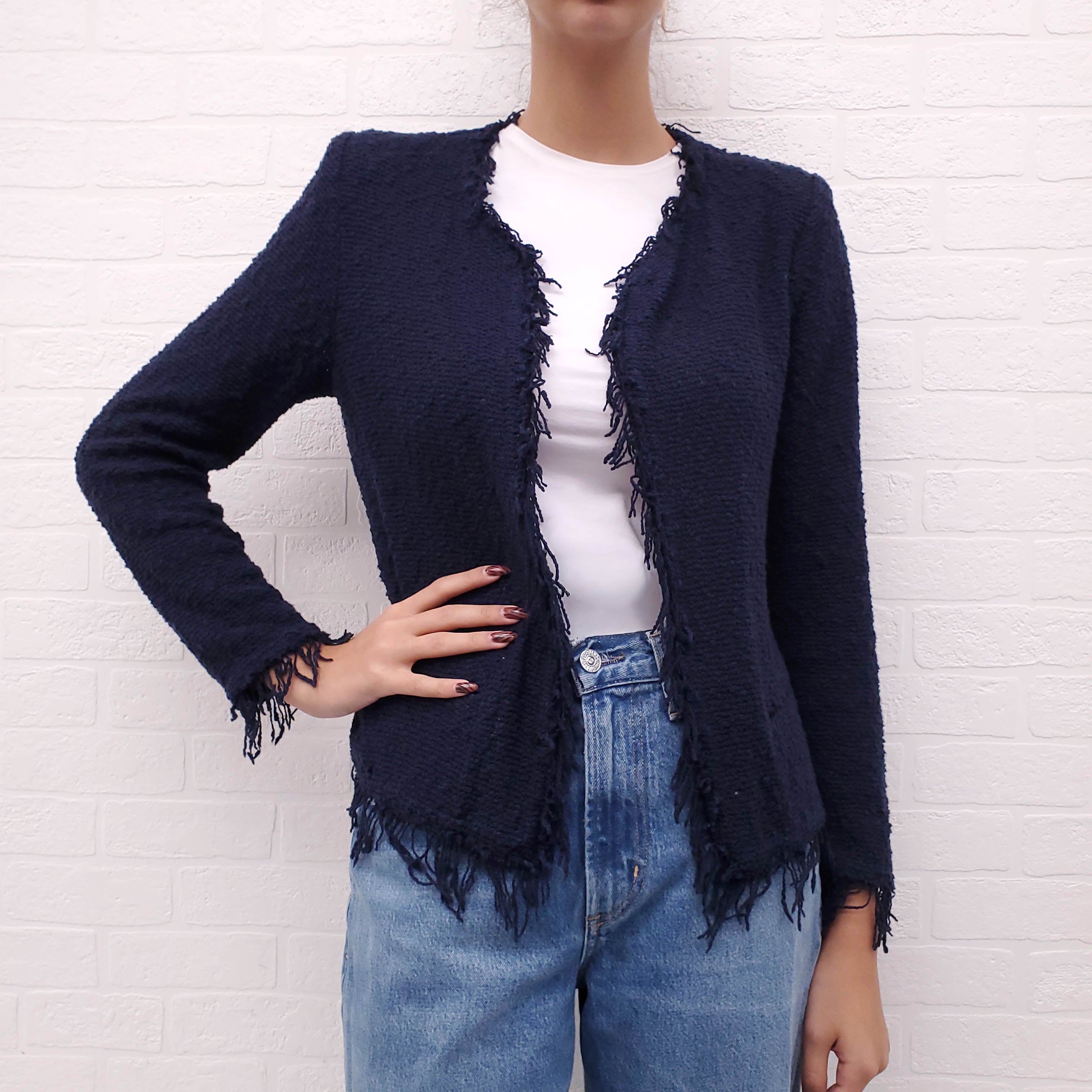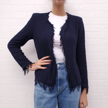 IRO NAVY KNIT JACKET WITH FRINGE - SIZE 38