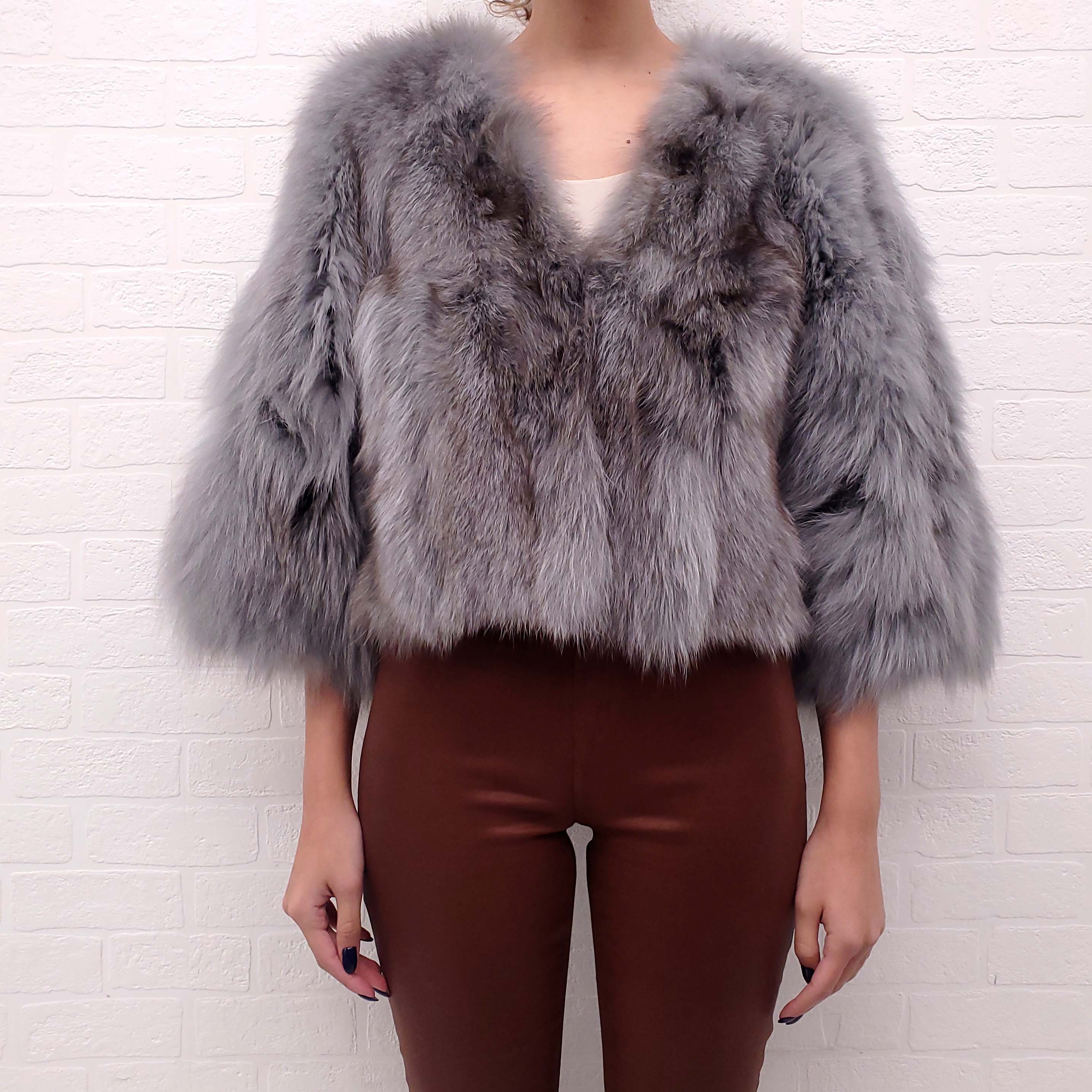 POLOGEORGIS GREY FOX FUR JACKET - SIZE M