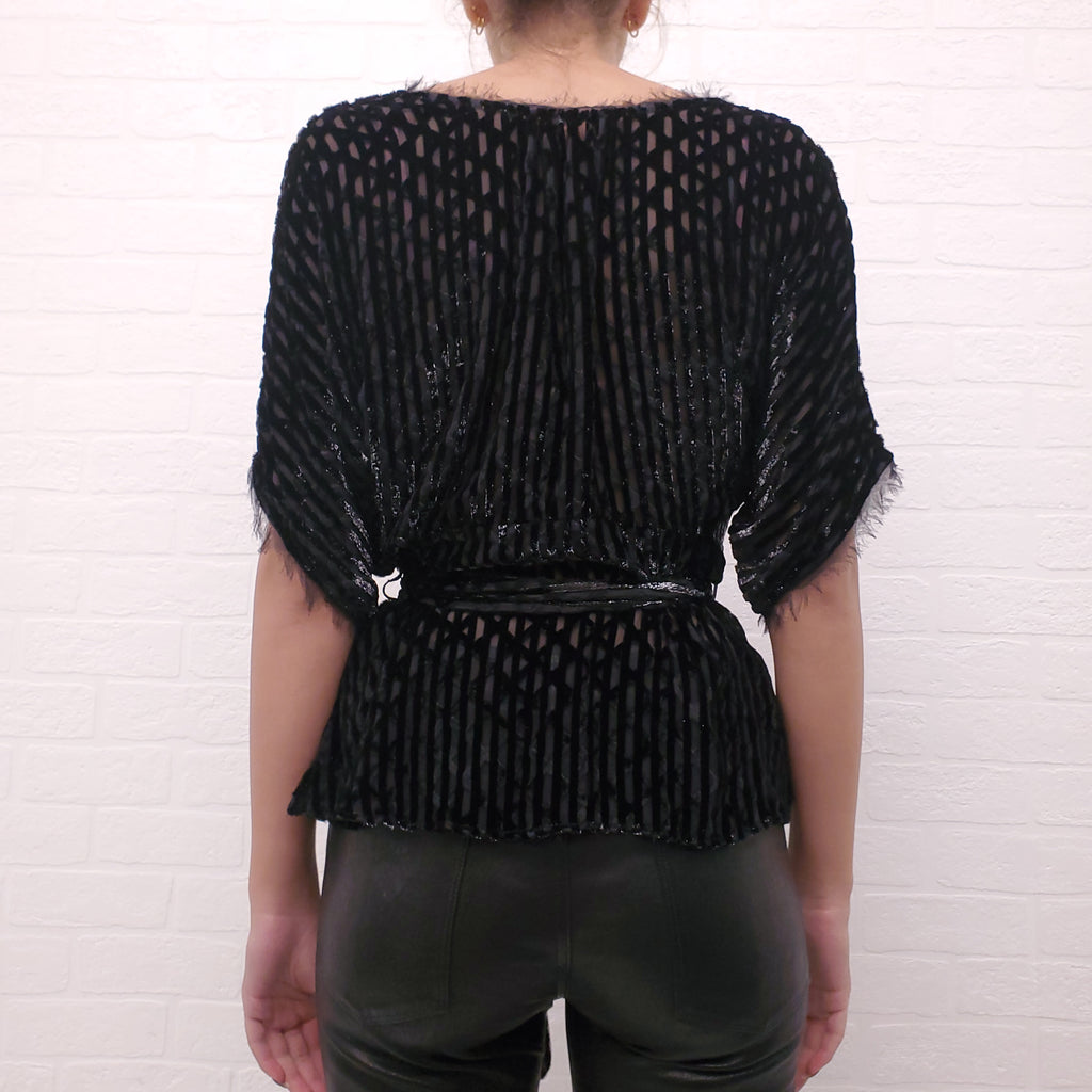 RACHEL COMEY BLACK VELVET SHIMMER STRIPE TOP - SIZE 0