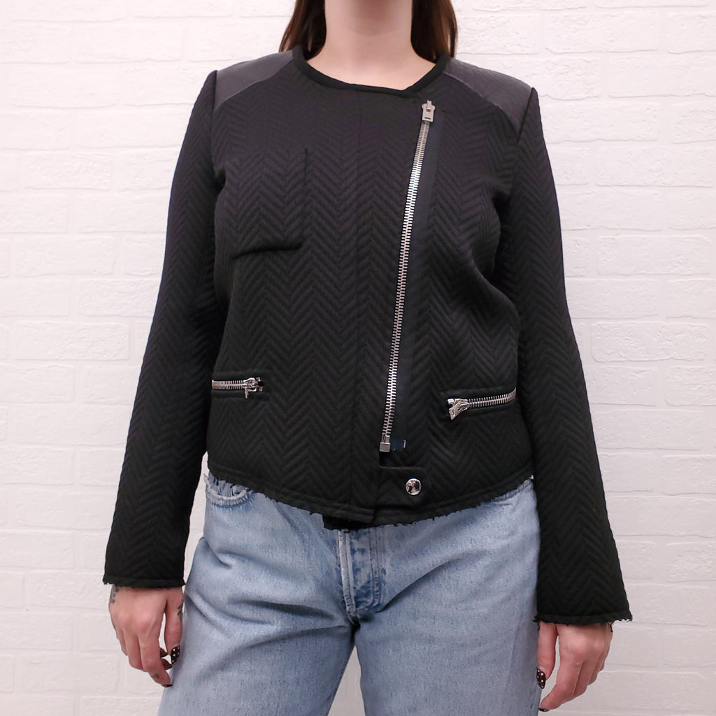 IRO BLACK TWEED JACKET WITH LEATHER DETAIL - SIZE 3/L