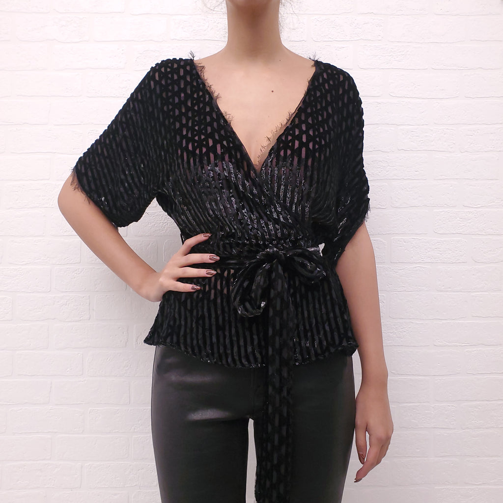 RACHEL COMEY BLACK VELVET SHIMMER STRIPE TOP - SIZE 0